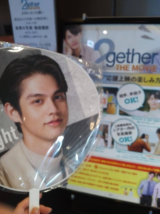 このところ免疫力が下がりそうな心労が多く、エンパワーメントのために映画『2gether THE MOVIE』を観てまいりました。しかも6月24日に全国の上映劇場で実施されるという「“無発声“応援上映」というイベントの日に。サラワット役のブライトのうちわを持参していきました。