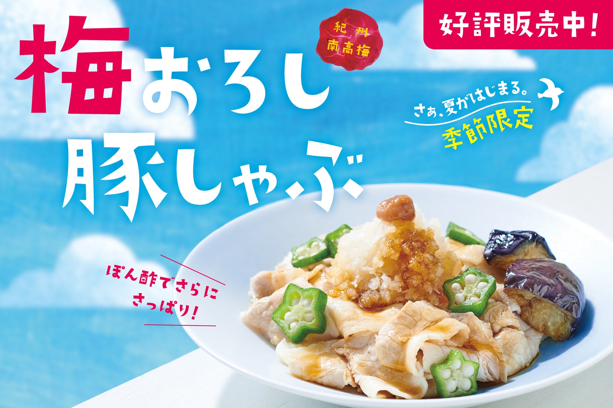 梅雨の蒸し暑くなる時期にぴったりの、紀州南高梅と大根おろしで爽やかな味わいに仕上げた商品です。野菜もしっかり食べたいという方におすすめの、1日に必要な野菜の1/3を摂れる※1『梅おろし豚しゃぶサラダ』も販売しております。食欲が減退しやすい季節にも、梅が香るさっぱりとした味付けで美味しくお召し上がりいただけます。